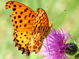 | ノアザミを吸蜜するツマグロヒョウモン | 帰路遭遇したニホンカモシカ | ||