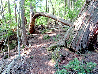 | 東海自然歩道 | 猿滝への橋は劣化が激しく渡る気になれない | 倒木を跨いだり潜ったりして進む |
