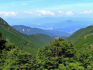 | がら空きの平日の大桧駐車場 | 恵那山追分登山口 | 恵那三山と中津川、恵那の市街地 |
