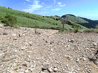 | 神坂峠 | 神坂峠遺跡の石柱 | 萬岳荘からの道との合流点 |