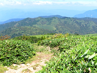 | 恵那山を背景に広がるササ原が気持ちいい | 富士見台山頂と恵那山 | |