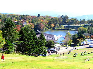 | まだ空いている茶臼山第一駐車場 | 茶臼山高原スキー場のゲレンデを登る | ゲレンデから観る矢筈池 | |