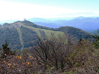 | 山行記 | ●茶臼山は3週間前に芋煮会に合わせて訪れたが、その時はまだ紅葉も色付き始めたばかりだったので、そろそろ見頃になっているのではないかと思い、この日、同級生を中心とする山登りで訪れることにした。 ●この日は週間天気予報では曇りだったのだが、直前の予報で晴れに変わった。しかし、標高が高い上に放射冷却と風とによる気温の低下が心配だが、これまで暑さ対策ばかりしてきたので、何を着て行っていいのかわからない感じだ。 ●「茶臼山高原まつり」開催中の三連休の中日ということで、駐車場の混雑が予想されたことから、早目に豊川を出たのが奏効し、駐車場もまだ空いていて、逆にどこに車を停めようか迷う程だった。 ●「茶臼山高原まつり」の営業は既に始まっていたが、まずは茶臼山へ向かう。最初は茶臼山高原スキー場のゲレンデを歩いて第二駐車場へ緩やかに登る。傾斜はしだいに急になっていくが、前方に見える青空がいい感じだ。 ●意外に呆気無く第二駐車場に着くが、手前の「てんくう」のテラスからは紅葉が始まった樹々や矢筈池を見下ろすことができた。第二駐車場を横切り、西登山道入口から山道を登り始める。 ●この辺りまで来ると、紅葉した樹々が現れるが、葉が色付く前に散ってしまったと思われるものが目立ち、あまり綺麗な紅葉にはなっていない感じだ。 ●その後、草原の道を回り込むようにして登っていくと自由の広場に着く。自由の広場からは、北岳から聖岳に至る南アルプスの3,000m峰群を一望することができた。 ●自由の広場からは、再び樹林帯に入り、展望台を右に見ながら急坂を登ると、道は一旦平坦になるが、この辺りは色付いた樹々が見観られる。道はその後少し下ると、森の広場へ道を分け、次に長野県側への分岐を過ぎると急な階段の道に代わる。 ●老朽化の進んだ丸太の階段と滑りやすい急坂を登り切ると山頂一角の広場に出る。そこからは、隣の萩太郎山や奥三河の山々、南アルプスなどを観ることができた。 ●広場から平坦な道を少し進めば立派な展望台のある茶臼山山頂だ。展望台に上ると、先程の広場と同じく、まだサンパチェンスの咲く萩太郎山や三ツ瀬明神山、宇連山、大鈴山などの奥三河の山々や南アルプスなどを観ることができた。 ●茶臼山山頂には多くの家族連れやカップルなどが次々と訪れ賑やかだった。展望台で少し過ごした後、来た道を戻り、第二駐車場まで下ると、天気がいいので萩太郎山も寄っていくことにした。 ●舗装道を跨ぐ橋を渡り、草地を登っていくが、雨水が沁みていたのでコンクリート舗装の道を登ることにした。舗装道とは言っても傾斜は急で、少し登っては振り向き、景色を楽しみながらゆっくりと登っていくとサンパチェンスの花壇に出る。 ●サンパチェンスは意外によく咲いていてまるで最盛期の様で、それらを目当てに訪れた人達で賑わっていた。花壇からは一登りで萩太郎山山頂に着く。三角点は山頂の目立たない場所で見つけることができた。 ●リフトで簡単に登ることができる萩太郎山山頂には、立派な展望台や今流行りのテラス、清潔なトイレなど様々な人工物が設置されており、隣の茶臼山山頂とは大きく雰囲気が異なる。 ●萩太郎山山頂からは、茶臼山から観ることができた奥三河の山々や南アルプスなどに加えて、中央アルプスや蛇峠山、笠置山なども観ることができた。 ●萩太郎山山頂で少し過ごした後下山を始める、下山は登ってきたコンクリート舗装の道を下るが、正面に展望が広がるのでいい感じだ。第二駐車場まで下ると、ゲレンデの斜面を下って車を置いた第一駐車場へ戻った。 |