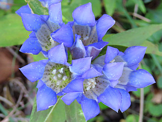 | 山行記 | ●遅れていた秋の花だが、いつの間にかそれも終わりに近付いてきた。この日は良く晴れるという予報なので、名残の秋の花々を観るために、花の多いこの山を訪れることにした。 ●平日なので奥浜名自然歩道入口駐車場は空いていたが、これまで降った雨のせいか駐車場はぬかるみもあり、歩く前から靴底が汚れるのが気になる。おまけに、うっかりしてザックをその泥の上に落としてしまったのでいきなりテンションが下がる。 ●それでも気持ちを入れ替えて登山口から登り始める。道沿いではリュウノウギクやイナカギクなどが咲いていた。後は花の少ない道を「平坦コース」、「らくらくコース」と、緩やかなコースを選んで歩いていくと林道が横切る。 ●林道からはすぐに展望台に着くので、上ってみるが、期待した富士山は厚い雲に覆われその姿は見せてくれなかった。花は、リンドウなどが多く見られたが、時間が早いのでまだ開いているのは無く、後はミカワマツムシソウなども観ることができた。 ●展望台を過ぎると、終わりに近づいたマツカゼソウやスズカアザミなども加わり、この時期になっても花の山だ。さらに登っていくと、舗装道に出るが、そのまま山道を進めば富幕山山頂に至るまっすぐの道だ。 ●この辺りは花の多い所だが、これまで見た花の外、ナンバンギセルもかろうじて残っていた。富幕山山頂には立派な展望台があり、そこからは浜名湖方面や遠州灘などを観ることができたが、やはり富士山は観ることができなかった。 ●まだ誰もいない展望台下の休憩所でしばらく過ごした後下山にかかる。下山は陣座峠方面へ下りることにした。陣座峠へは、一等三角点を確認した後、この山の圧倒的なシンボルである電波塔の横を進み、陣座峠、瓶割峠分岐を陣座峠方面へ下る。 ●道は樹林帯の中で薄暗く、最初はまっすぐな山道を緩やかに下っていく。最初は霧がかかり、太陽の光芒がいい感じだったが、下るに従い霧も無くなり花の無い山道をひたすら下っていく。 ●緩やかな道はしだいに急になり、ザレて滑りやすいジグザグの道を下っていく。一旦急坂が落ち着くと送電線鉄塔が現れ、さらに下っていくと陣座峠に下り立つ。 ●陣座峠からは、最初舗装道を歩いて奥浜名自然歩道入口駐車場へ戻ろうと思っていたのだが、今回は陣座峠から始まる車の進入がゲートで停められている富幕林道を歩いてみることにした。 ●道は緩やかに上る、未舗装だが車が通ることのできる広い道で、良く車が走っているのかよく整備がされているようだった。途中展望の開ける箇所もあったが、テープで止められている荒れた区間もあった。 ●富幕林道は意外に長く感じ、心配になったが、富幕林道の終点の表示を過ぎると程無く思っていたとおり、奥山コースの、先程通った林道が横切るところに出た。後は、奥山コースを下って奥浜名自然歩道入口駐車場まで戻った。 |