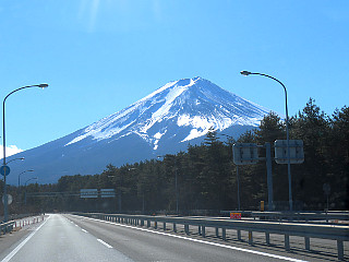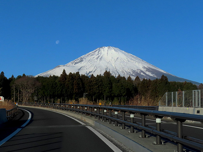 | 往きの新東名高速道路新御殿場IC付近から観た見事な富士山と残月 | 登り始めると背後に観える富士山 | |