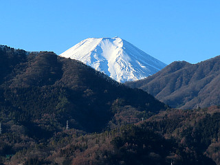 | 山行記 | ●この時期、富士山の展望を期待して、これまでいろいろな山を登ってきた。今回も富士山目当てで計画を立てていたのだが、なかなか手頃な山が見つからず。結局、思いっきりローカルなこの山に落ち着いた。 ●朝、豊川を出て、新東名高速道路を走って登山口の都留市へ向かうのだが、この日は天気が良く、道々既に富士山の雄大な姿を楽しむことができ、特に御殿場付近では、これ以上のものは観られないと思われる程の富士山の姿を観ることができた。 ●ということで、登山口に着く前に富士山の展望も既に腹いっぱいという感じだったが、山に登ればそれはそれで、また違った富士の展望を楽しむことができることだろう。 ●車を置く予定の都留市駅前は駐車場が少ないということで、事前に一日貸しの有料駐車場を予約しておいたので、そこに車を置くと、平日の通勤車両でまだ混雑している道を歩いて登山口へ向かった。 ●事前にグーグルマップを見たところ、なかなか確認することができなかった西涼寺の登山口だが、案内は無いものの、それらしい道が続いていたのでそれを登ってみることにした。 ●墓地の奥の急な石段の道を登っていくと、登るにつれ手前の山の間から観える、雪で化粧をした富士山が大きくなってくる。登山道はすぐに尾根道に代わり、金毘羅宮からの道を合わせ、さらに登っていくと富士山展望台に出る。 ●富士山展望台からは、都留の市街地の先に、倉見山や杓子山の背後に聳える富士山の姿を観ることができる。再び急な道を登っていくと谷村発電所からの道が合流し、やがて都留アルプス最初のピークである蟻山山頂に着く。 ●電波施設の鉄塔が立つ三角点のある蟻山は烽火台跡でもあり、そこからも都留市街地と富士山や杓子山、三ッ峠山などの山々を眺めることができた。蟻山からは急な下りが始まり、鞍部である円通院、護国寺方面への分岐に出る。 ●鞍部から再び道は上り始めるが、だらだらと一定の斜度が続く道で、以外に応える。途中送電線鉄塔を過ぎると白木山山頂に着く。白木山山頂は既に葉を落としている樹々に囲まれているので、樹間から都留市街などを観ることができる。 ●白木山から短い急坂を下り、再びだらだらと斜面を登り切ると長安寺山山頂だ。ここも白木山山頂と同じで樹間から都留市街などの展望が得られるが、少し進むとパノラマ展望台という展望台に着く。 ●パノラマ展望台からも都留市街などの展望が開けるが、富士山は都留アルプスを南下するに従い尾崎山の背後に隠れてきてしまい、山頂部分しか見ることができないのが残念だった。 ●パノラマ展望台からは鍛冶屋坂と呼ばれる急な下りが続き、下山してしまうのかと勘違いするぐらい麓と同じぐらいの標高まで下る。そこには山中湖から上野原の発電所まで水を運ぶ「ピーヤ」呼ばれる水路橋があり、下から見ると眼鏡橋のようだ。 ●その後道は上りに代わり、送電線鉄塔を見送り緩やかに登っていくと、際立ったピークとは言い難い天神山山頂に着く。天神山から急坂を下ると興譲館高校への下降点のある鞍部に出るが、ここからも水路橋「ピーヤ」を観ることができる。 ●鞍部からはまた急坂を登るようになる。「第一小学校学校林」の看板が掲げられていて、少し登った所に休憩舎があるので、そこで少し休憩をする。そのあたりは伐採地になっているので展望が広がり、三ッ峠山や黒岳、雁ヶ腹摺山等を観ることができる。 ●休憩舎からさらに登ると、都留文科大学方面への分岐が現れるので、そちらへ下り始める。ここら辺一帯は桜の植樹がされていて、将来的には都留の新名所として整備しようと、桜の木が1000本植樹されているらしい。 ●それを下っていくと楽山公園を抜けて都留文科大学横の舗装道に下り立つ。後は、都留文科大学生に交じってその舗装道を下って都留文科大学前駅まで歩き、ペイントとされた絵が楽しい電車に乗って都留市駅に着くと、朝車を置いた駐車場まで戻った。 |