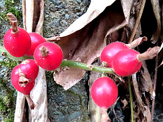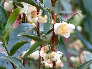 | 麓には茶畑が広がる | ハナミョウガ | 耕作放棄されたチャの花 |