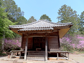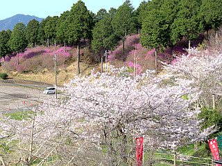 | 駐車場から善住禅寺へ向かう | つつじ展望台から観るサクラとコバノミツバツツジ | 獣除けの柵の出入口 |