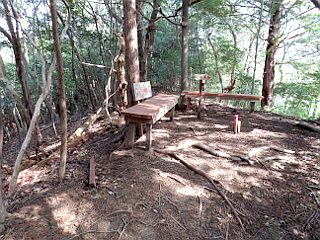 | 山頂、自然探勝路分岐 | 休憩所から観る観音山 | 背戸山山頂 |