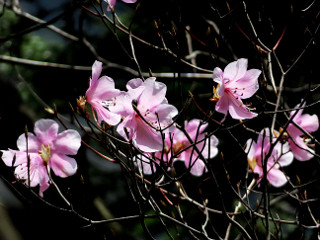 | 山行記 | ●近所の里山でも春の花が咲き始め、行く山に事欠くことは無いのだが、近所の里山では観ることのできないアカヤシオが観たくなったので、久しぶりに平山明神山へ行ってみることにした。 ●前に訪れたのはこの日と同じ4月19日でアカヤシオもよく咲いていたのだが、今年は春の花が遅れているということなので、ネットなどで情報を収集してみたが、今年のこの日のアカヤシオがどんな状態なのかは全く見当がつかなかった。 ●朝8時過ぎに大神田登山口の駐車場に着いたが、土曜日というのにまだ一台の車も停まっていなかった。この日は真夏並みに暑くなるということなので、今年初めてTシャツと上着という格好で登山開始だ。 ●登山口からまずまずの坂道が始まる。道沿いにはタチツボスミレがよく咲いていていい感じだ。少し登ると「山の神」という案内があるので、そこに立ち寄り、参拝した後、本道に戻って再び登り始める。 ●最初は直線的だった道も、傾斜が増してくると不規則なジグザグを切って登るようになる。スギやアカマツの落ち葉が降り積もった急な道は滑りやすく大変で、何度も上を見上げながらひたすら登っていく。 ●目の前に平山明神山本峰の岸壁が見えてくると、壊れてしまったベンチのある広場に出て、さらに登ると夫婦岩への分岐が現れる。行く手も明るくなってくるので稜線まであと少しだろうと考えがちだが、そこからもさらに急登が続く。 ●ようやく稜線が近付いてくると、大鈴山と平山明神山との分岐が現れるが、稜線まではさらに急登を登ることになる。やがて着く稜線は「西の覗き」と平山明神山との分岐になっている。 ●西の覗きは後回しにして、まずは平山明神山山頂へ向かう。道はやはり急な道で、ようやく辿り着いた平山明神山山頂は狭くて展望も無く、意外な感じだ。 ●平山明神山山頂周辺ではお目当てのアカヤシオが咲いているが、樹高が高いので、なかなか近くで花を観ることができないのがもどかしい。とりあえず山頂の奥の方まで行ってみた後、山頂直下から分岐している大明神へ行ってみる。 ●前回ここを訪れた時は大明神周辺のアカヤシオがいい感じだったので、期待したのだが、今回はまだ蕾のものが多く、その代わりにアセビがよく咲いていた。足下にはイワカガミの葉が目立っていたが、まだ蕾ばかりで咲いているものは確認できなかった。 ●大明神から平山明神山山頂を経て西の覗き分岐まで戻ると、今度は西の覗きへ行ってみることにした。西の覗きからは、大鈴山や茶臼山などを観ることができたが、恵那山などの遠くの山は霞んでいて観ることはできなかった。 ●西の覗き周辺のアカヤシオの咲き具合はいい感じで、しかも間近で咲いているのを観ることができるので、しっかりと観察することができた。西の覗きで、しばらくアカヤシオや展望を楽しんだ後、下山は来た道を戻った。 |