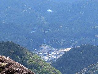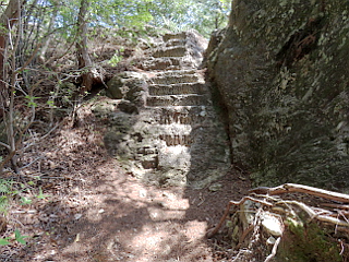| 瑠璃山から観る三ツ瀬明神山と宇連山 | 瑠璃山から観る浜松のアクトタワー | 岩を削った階段 |