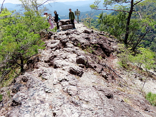 | 崩壊寸前の天狗岩の休憩舎 | 鷹打場展望台 | 鷹打場展望台から観る新緑の鳳来寺山 |
