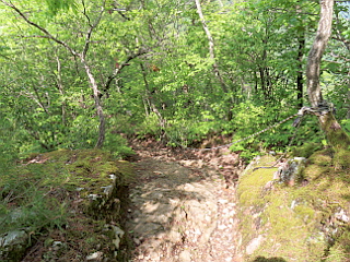 | 新緑が眩しい舗装道 | 望笙峠 | 金吾丸跡 |