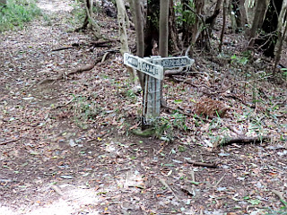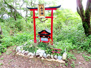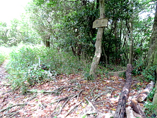 | 眉山縦走路入口には山の神が祀られている | 眉山三角点のある広場 | 地名は不明だが石に刻まれた立派な道標 |