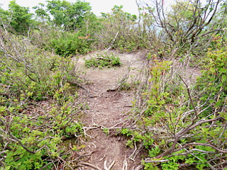 | 山行記 | ●6月に入ると、いつ梅雨入りとなるのかが気になるところで、この日も週間予報では雨の予報、ところが直前の予報では、下り坂なのだが、日中は曇りで雨は遅くなってからということだ。 ●それならということで、久しぶりに、以前訪れたことがある貝月山へ行くことにした。前回は、長者の里から入山したが、今回は、行程の短い揖斐高原スキー場の方から登ることにした。 ●朝、出発する時には豊川では雨が降っていたが、現地は大丈夫だろうと思って決行することにした。現地の駐車場に車を停めるが、周囲では既にタニウツギやミズキ、サワグルミなどの木の花が全盛期でいい感じだ。 ●空はどんよりとしているので雨の装備をして、車止めを抜けて舗装道を歩き始める。舗装道は意外に傾斜があって大変だが、タニウツギや、地味なのだがサワフタギやカエデの仲間の花や実が観られるので楽しい。 ●舗装道は大雨などによるものなのか、傷みが激しく、大きく崩壊した箇所も見られた。少し登ると、「貝月山歩道」と書かれた案内があるのでそこから山道に入った。道は木の階段が整備されているのだがとにかく急で、それがしばらく続いた。 ●なんとかそれを登っていくと、最初と比べれば傾斜が緩み周囲も明るくなってきて、ベニドウダンやギンリョウソウ、タニウツギなどに励まされてさらに登っていく。 ●道はしだいに急になり、石も多くなってきて歩き難い上に豪雪地帯らしく雪の重さで根元から曲がってしまったシロモジなどが目の前に垂れてきているので、上も下も大変な状態だ。 ●それらを何とか登り切ると突然眼前が開けて貝月山山頂に到着する。貝月山山頂は開けていて立派な展望台も整備されている。山頂からは、曇っているので遠くの山は観えず、近くの伊吹山もぼんやりと観える程度だった。 ●貝月山山頂の、石を並べて造ったベンチとテーブルで少し過ごした後、せっかくなので小貝月山へも寄っていくことにした。貝月山からガレとザレで滑りそうな急坂を下っていくと、小貝月山と思われるピークを観ることができるがまだ遠くに見える。 ●下りを終え、幾つかの起伏を越えて稜線を進んでいくと、小貝月と書かれたプレートがあり、そこから左に上がると小貝月山山頂だが、狭く展望もそれ程では無く、壊れた山名プレートがあるだけだった。 ●小貝月山から貝月山まで戻ると、今度は日越峠方面へ下る。こちらのコースは傾斜も緩く、石や倒れ込む樹々も気にせず歩くことができるのでいい感じだ。それでも、下に行くにしたがって階段のある急坂が多くなる。 ●やがて道が折り返す日越峠に着く。地図を見ていると、ここからは快適な林道を歩くだけだと勝手に思っていたのだが、そこからも、ここまでよりも不安定で急な山腹道が続く。 ●一部崩落した箇所や、滑りやすい片流れの道が続くので気が抜けない。以降もそのような道が続き、最後に舗装道に下り立った時にはほっとした。 ●後はその舗装道を下るだけで、トチやサワグルミ、ミズキなどの花や実がなる大木や、タニウツギやサワフタギの花、ミネカエデやテツカエデなどの羽根のある実などが観られて飽きることは無かった。 |