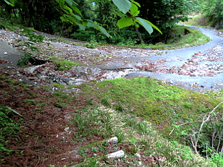 | 駐車場とゲート | 崩落個所の多い舗装道 | 貝月山歩道入口1 |