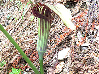 | 圧巻のサワグルミの大木 | マムシグサ | |