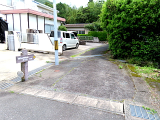 | 手洗分岐 | 未舗装林道と出合う | 民家の脇の神石山自然歩道登山口 |