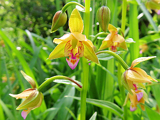 | 山行記 | ●数日前、いよいよこの地方も梅雨入りしたのだが、この日は早くも梅雨の中休みということだ。そんな貴重な梅雨の中休みの日に山へ行かない手は無い。ということでこの日は久しぶりに豊橋自然歩道を訪れることにした。 ●平日の通勤時間ということで、道は混雑していたが、葦毛湿原の駐車場の方は思ったとおり空いていた。早速支度を済ますと歩き始める。葦毛湿原入口までの薄暗い通路では蕾なのか花後なのかはわからなかったがムヨウランを観ることができた。 ●葦毛湿原入口に着くと湿原内を歩いて現在咲いている花を探す。湿原内ではカキランやノハナショウブ、クチナシ、モウセンゴケ、トウカイモウセンゴケなどが良く咲いており、木の上では色々な鳥が盛んに鳴いていた。 ●葦毛湿原を隈なく巡った後、この日は岩崎自然歩道から登っていく。道沿いでは既に終わりかけのハンカイソウやバイケイソウ、咲き始めたムラサキシキブなどを観ることができた。 ●湿原の奥から来る道と合流し、一息峠を過ぎ、その先で急な階段を上がると、弓張山地の主稜線に出る。その後短い急坂を登ると展望のいい稜線道に代わるが、この辺りからササユリが観られるようになる。 ●麓で頻繁に行き来する新幹線を見ながら、送電線鉄塔を過ぎ、少し行くとNHK二川テレビ中継局に着く。手前の広場では、ササユリが咲く外、オカトラノオやコウゾリナなどが咲き始めていた。 ●NHK二川テレビ中継局から少し下り、登り返すと座談山山頂だ。新幹線や遠州灘などを観る特等席のようなベンチで少し休憩をした後、この日は富士山などを観ることができなかった送電線鉄塔のある広場から急坂を下ると船形山のコルに着く。 ●船形山のコルから緩やかの登っていくと送電線鉄塔が立つ船形山山頂に着くのだが、ここは展望も無いのでいつものとおり通過して緩やかに下っていくと普門寺峠に着く。 ●その先は岩の目立つ道になり、展望が開ける望寺岩を見た後、送電線鉄塔を過ぎると、手洗への下降点となる神石山自然歩道分岐に出る。そこからは神石山山頂への急な登りが始まる。それを登り切ると、一等三角点のある神石山山頂だ。 ●平日でも多くの人が訪れる山頂では、この日も多くの登山者が休憩をしていた。この日は朝から曇りだったが、しだいに明るくなってきた。それでも、富士山や南アルプスなどの遠くの山を観ることはできなかった。 ●神石山山頂でしばらく過ごした後、下山を始める。まずは、先程の手洗への分岐まで戻り、今度は手洗方面へ下る。道は意外に急なうえにアカマツの葉が多く落ちていて滑りやすいので、それも気を付けながら下る。 ●途中で林道を横切りさらに進むと傾斜は緩やかになってきて、沢を渡った後、平坦な道を進む。左手に立派な神社が現れるとすぐに民家が現れ、神石山自然歩道登山口に出る。 ●後は車を置いた葦毛湿原駐車場まで2km程舗装道を歩くことになる。気温の上ってきたこの時間、薄日の差す舗装道を歩くのは暑いと思ったが、風もあり日陰も所々にあるのでそれ程大変ではなく、林縁の花なども観られるのでむしろ楽しい道程だった。 |