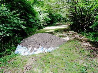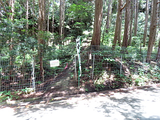 | 砥神山西峰山頂から観る三河湾と渥美半島の山々 | さがらの森の作業道の陥没箇所は補修中 | ||