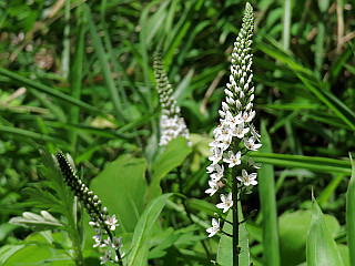 | 山行記 | ●この地方も梅雨入りしたばかりなのだが、いきなり中休みのようで、週間天気予報は晴れのマークが並ぶ。この日も日中の気温は30度を超えるという予報だったが、朝は曇りで、終いには雨も降りだした。 ●雨雲レーダーを確認すると、雨を降らした雲はすぐに移動するようなので、それを信じて出掛けた。車に乗っている時には降っていた雨も、とよおか湖公園駐車場に着く頃には薄日が差してきた。 ●それでも万が一の時のために雨具は持って行くことにした。まずはいつものとおり、あさやけコース登山口方面へ林道を歩いていく。道沿いではムラサキシキブやアカメガシワ、ママコノシリヌグイなどが咲いていた。 ●あさやけコース駐車場まで来ると、未舗装の道を上ってあさやけコース登山口へ向かうが、養鶏場跡では足場などの建設資材が搬入されていて、これから何かを建設する予定のようだった。 ●あさやけコース登山口からは今回も林道をそのまま進み、途中の原山登山口から直接原山へ登る。道は原山のすぐ手前に出るので、そこからは数十歩で原山山頂に着く。 ●原山山頂からは、すっかり晴れて青空も観えてきたので、三河湾や渥美半島などへの展望が広がっていた。原山山頂からは、ミズヒキが咲き始めた稜線道を歩き、獣除けの柵を開け閉めして砥神山へ向かった。 ●鞍部から階段を上り、さらに進んでいくとあさやけコースと合流するので、そこからは砥神山へ向けて急坂を登っていく。途中、砥神山山東峰山頂への分岐があるので、それを登っていけば、役行者を祀る砥神山山東峰に到着する。 ●東峰山頂からも、青空を背景とした三河湾や渥美半島などの絶景が広がる。東峰山頂で少し過ごした後、今度は砥神山西峰山頂へ向かう。東峰山頂から下り、さがらの森方面への分岐を過ぎ、少し登ると砥神山西峰山頂に着く。 ●砥神山西峰山頂からも東峰同様に展望が広がるので、それを楽しんだ後、一旦先程の分岐まで戻り、今度はさがらの森方面へ下る。途中であさやけコースと合流し、アップダウンしながら登っていくとさがらの森の入口に着く。 ●さがらの森入口からまずは「管理事務所」の指す方向に進むと、花の多い樹林の中の山腹道になるが、この時期は終わりかけたシライトソウぐらいしか観られなかった。 ●山腹道はその先で作業道と合流するので、花を探しながら作業道を歩いて戻る。花はムラサキシキブぐらいしか観られなかったが、以前の大雨などで陥没した箇所の補修が行われているようで、補修用の土砂が山になっていた。 ●ゆうひの丘と潮見展望台との分岐まで戻ると、まずはゆうひの丘へ寄り、その後潮見展望台へ行ってみた。潮見展望台からはラグナシアや三河湾などの展望が有り、空ではトビが獲物を探すように飛び回っていた。 ●潮見展望台からは、地図を確認して、分岐からそのまま進み、キャンプ場方面へ下ってみることにした。この道はあまり歩かれていないようで、通行困難な倒木があったがなんとか通過し、道に沿って折り返すとキャンプ場へ通じる舗装道に出た。 ●キャンプ場内の道を進んでいくと、ウツボグサやオカトラノオ、池にはスイレンの花が咲いていた。キャンプ場内の道をそのまま進むとさがらの森駐車場に出て、そこから舗装道を下ると御堂山登山口のある広場に着く。 ●いつものようにコンクリート舗装された急な道を上っていく。今回は直登コースではなくコンクリート舗装の階段のある道を上るが、どちらを選んでも急で大変だ。そして最後の急な石段を上ると御堂山山頂だ。 ●御堂山山頂からは三河湾方面や豊川市街などへの展望を得られるが、木々が伸びてきていて、来る度に見にくくなっていく。御堂山山頂で少し休憩をした後、今回も国坂峠方面へ進む。 ●しばらくは緩やかな歩きやすい道が続くが、しだいにアップダウンや急な下りも現れはじめる。さらに進むと展望台を経て、国坂峠方面ととよおか湖方面への分岐に出る。 ●ここからは、とよおか湖方面へ下るが、急な下りが続く。国道23号バイパスを通行する車の音がよく聞こえるが、道路自体は樹々の間から辛うじて観えるだけだ。 ●途中にとよおか湖方面への近道の案内があるが、以前通ったときは最後が急で大変だったので、それを通り越してひたすら下る。やがて白山神社があるのでそこへ寄り、さらに急坂を下っていくと、とよおか湖へ通じる舗装道に出る。 ●後はそれを歩いてとよおか湖へ向かう。気温は既に30度は超えていそうだが、木陰もあるのでそれを利用しながら進むと、とよおか湖の堰堤へ向かう道があるのでそれを歩き、堰堤を経て車を置いたとよおか湖公園駐車場まで戻った。 ●今回は6月の、しかも雨後ということもあり、日向はともかく、日陰では花の撮影なので、留まる度に蚊の猛攻があり、たちまち取り囲まれてしまった。幸い団扇を持っていたので刺されることは無かったが、いきなりそんな季節になっ