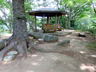 | 飯盛山山頂 | 飯盛山山頂の東屋 | 飯盛山山頂から見る足助城 |