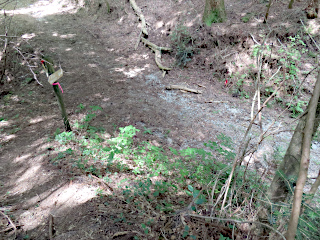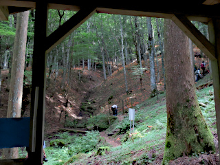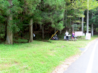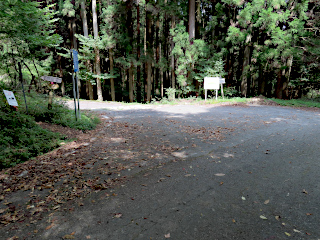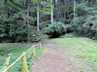 | オオキツネノカミソリ登山口 | 林道 | 休憩舎から観るオオキツネノカミソリ群生地 |