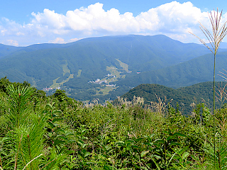 | 山行記 | ●今年の夏は久しぶりに野沢温泉へ行くことになった。野沢温泉は、かつてスキーに夢中だった頃、毎年のように訪れていたところだが、しばらく訪れておらず、ましてやグリーンシーズンに訪れことは無かったので楽しみだ。 ●それでも、野沢温泉だけではもったいないので、途中高社山へ登ってから向かうことにした。ということで、高速道路の深夜割引が適用される時間ギリギリに高速道路に乗って登山口のよませ温泉スキー場登山口へ向かう。 ●ところが、いつものようにカーナビがおかしくて、よませ温泉スキー場駐車場でセットしたのにゴルフ場を案内されてしまった。おかしいと思い、ゴルフ場の方に聞くとそこからはよませ温泉スキー場駐車場へ行くことができないということだった。 ●よませ温泉スキー場駐車場へは一旦国道まで戻り、改めてそちらへ上り返す必要があるということだった。結局タイムロスを余儀なくされてしまったのだが、このナビではよくあることなので慣れたものだ。 ●改めてまだ一台の車も停まっていない登山口のよませ温泉スキー場駐車場に着くと早速歩き始める。最初は、特に登山道は無いというゲレンデの歩きやすいところを選んで登るが、日陰も無く、すでに高く昇った太陽が照りつけるのでとても暑い。 ●それでも、オミナエシやマルバハギ、クロヅルなど、意外に多くの花が咲いているので癒される。振り返れば、横手山や笠ヶ岳、焼額山などの志賀高原の山々が観えてくる。道は急だが上部に行くに従い風が吹いているので暑さも少しは緩和されていく。 ●やがて道は作業道に出て、地図上ではそこから九十九に折れる作業道が始まるが、登山道はそれを串刺しにして登ることになっている。ところが、その道が見つからなかったので、まずはその作業道を辿ることにした。 ●作業道は、その分距離は伸びるのだが歩きやすい緩やかな道で、ゲレンデを外れた木々の中を歩く部分があるため木陰もあっていい感じだ。ということで、最後まで作業道を歩くことにしたが、一部ヤブになっている部分もあった。 ●そして作業道の終点からは山道が始まる。最初の急坂を登り切ると尾根に出るので、後はその尾根道を登っていく。一枚岩と呼ばれる岩場を越えて急な道を登っていくと高社山山頂に到着する。 ●高社山山頂からは、志賀高原の山々や斑尾山、戸苅スキー場などは確認することができたが、展望案内板にあるような妙高山や北アルプスなどの遠くの山々は観ることができなかった。山頂でしばらく過ごした後下山は来た道を戻った。 |