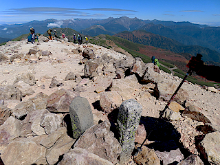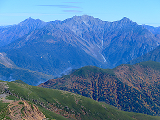 | 青空と紅葉と展望を楽しんだ手軽に登ることのできる3000m峰 | ||