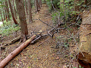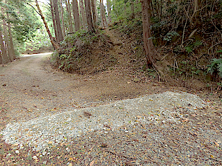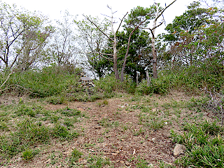 | 林道を横断して金山山頂へ | 倒木あり | 金山山頂 | ||