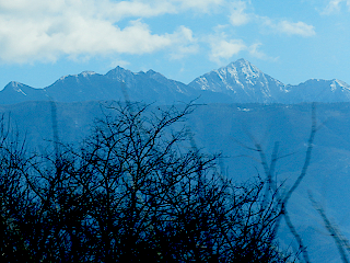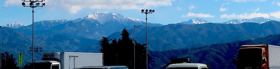 | 駒ヶ岳SAから観る甲斐駒ヶ岳、仙丈ヶ岳、北岳、間ノ岳 | |||