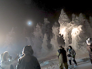 | 山行記 | ●妻が、志賀高原の横手山で行われるスノーモンスターナイトツアーに参加することができる豊橋、豊川発着のバスツアーを見つけてきた。面白そうなのでそれに乗っかることにした。 ●豊橋発のバスに、豊川IC近くの発着所から乗り込み志賀高原へ向かう。中央道からは南アルプスがよく観え、車内から写真を撮るのに忙しい。いつもは車の運転をしていて、写真を撮ることができないので、たまにはこういうのもいい。 ●この日、中央アルプスや北アルプス、北信の山々などは雪雲に覆われて、はっきりと観ることができなかったのは残念だったが、美ヶ原や高社山など東側の山はよく観ることができた。 ●志賀高原に入り、バスにチェーンを装着するときトラブルが起きて大幅に到着時間が遅れたが、1時間程遅れてスノーモンスターナイトツアーが始まった。 ●まずはホテルからシャトルバスでラフォーレ志賀まで行き、そこから雪上車のスノーモンスターに乗り換える。雪上車はかつて菅平の根子岳で乗ったことはあったが、スノーモンスターはそれよりも大きく、人も30人以上乗ることができる。 ●乗り心地は「日本一乗り心地が悪い」と言っていた根子岳のものと比べるとやや改善されていたが、やはり、お世辞にも乗り心地がいいとは言えず、座席が長い椅子に横並びなので、傾斜が急になったり急停止するときなど体を支えるのが大変だった。 ●スタートが遅れたことで、暗くなるのが早くて、期待していた夕焼けなどは観ることができず、道沿いの雪を被った樹木(スノーモンスター)もよく観ることができなかったのは残念だった。 ●気温マイナス13度の横手山山頂に着くと、雪上車から降り、周辺を歩いた後、横手山山頂ヒュッテの中で暖かいスープを飲みながら一休み、そこで渡されたヘッドランプを付けて再度スノーモンスターを観に行く。 ●スノーモンスターは例年と比べると小さいということで、確かにかつて根子岳で見たものと比べるとそんな感じだ。この日運航した雪上車は1台だけで、照明は参加者のヘッドライトと雪上車のライトだけなので、暗くて思ったような写真が撮れない。 ●それでも月はスノームーンの前日ということでいい感じだった。その後、雪上車で国道最高地点まで行き、草津温泉などの夜景を楽しんだが、暗いのでうまくカメラに納めることはできなかった。 ●結局、あっという間にスノーモンスターナイトツアーが終わり、それなりに楽しむことができたが、今度は昼間に、スノーシューで登って楽しむのもいいのではないかと思った。 |