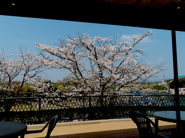 | 湯の華市場第5駐車場 | 湯の華温泉の食事処から観えるサクラと木曽川 | ||