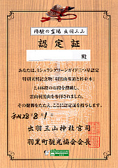 2,446段の石段踏破と羽黒山参拝認定証 二の坂茶屋でかき氷を食べたとき頂きました。 羽黒山(2016/8/1) |