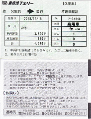 東京湾フェリー乗船券(久里浜→金谷)(表裏) 往復割引を使いました。 鋸山(2018/12/16)外 |