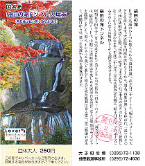 袋田の滝トンネル入場券(表裏) 滝を見るためのトンネルの入場料です。 月居山(2019/11/18) |