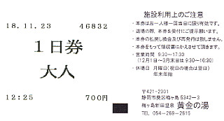 黄金の湯(静岡県静岡市)(表裏) 本当は、フロントに返さなければいけなかったようです。八紘嶺(2018/11/23) |