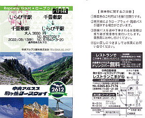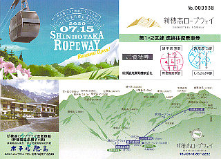 新穂高ロープウェイロープウェイカード(表裏) 西穂丸山(2022/5/17) |