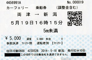 | 佐渡汽船乗船券(新潟港→両津港) キャンペーン中でとてもお値打ちでした。 尻立山(2014/5/18)、金北山(2014/5/19) |
