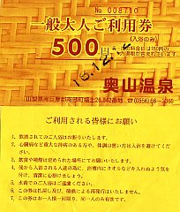 | 山小屋関係 jump 登山証明書、記念品等 入場料、駐車場使用料 乗車券 温泉入場券 神社、仏閣等関係 |