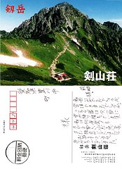 剣山荘の宿泊の礼状(表裏) お風呂のある山小屋です。 剣岳(2005/8/21) |