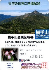 | 横手山登頂認定書 横手山山頂展望台の売店で販売していました。 横手山(2014/10/31) |