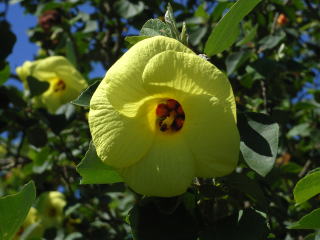 渥美半島(田原市) ハマユウやハマヒルガオ、ツワブキなどの海辺の花は伊良湖岬を始め各所で見ることができる外、蔵王山や雨乞山へ登れば山に咲く花も見ることができます。 また、堀切のハマボウ(左の写真)や伊川津、椛(なぐさ)のシデコブシなど特定の植物が群生するところもあり、それぞれ国や県の天然記念物に指定されています。 |