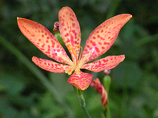 木地師屋敷跡(設楽町) 面ノ木にある木地師屋敷跡は江戸時代末期から大正時代にかけて活躍した木地師の住居を復元したもので、その周りはまさに野草の宝庫。私自身はまだ何度も訪れたわけではありませんが、野草の豊富さは噂以上でした。 ここからは面ノ木園地や、足を伸ばせば天狗棚、井山にも行くことができ、それぞれ違った花を楽しむことができます。 左の写真はヒオウギです。 |