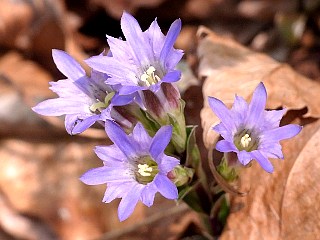 平成22年4月11日 ハルリンドウが真っ盛りの比丘尼城址、金山、雨生山。 何時もの比丘尼城址から金山、雨生山を巡るコースでは飽きる程のハルリンドウが見られます。 また、外にもクサボケやサルトリイバラ、各種スミレ、ヒメハギ、ウマノアシガタなど、春の花が咲き競っています。 詳しくはこちらをご覧ください。 |