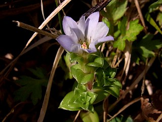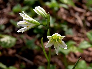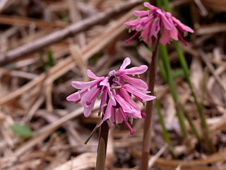 | 平成22年4月10日 カタクリの終ったカタクリ山。 残ったカタクリの花は数輪のみ、イチリンソウもそろそろ終わりですが、クサイチゴやハナニラ、ジロボウエンゴサクが元気に咲いています。ホウチャクソウも咲き始め、白花のジロボウエンゴサクが見つかったり、ウラシマソウも2株あったりとまだまだ楽しめそうなカタクリ山です。 |