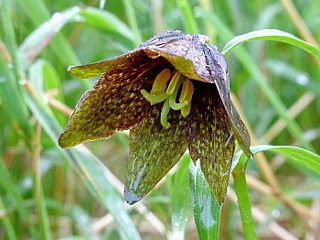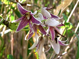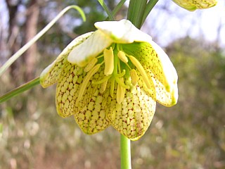 | 平成22年3月14日 新城の富岡でバイモが咲いていました。 富岡の空き地にバイモが群生していて、それらが見ごろを迎えていました。もともと在来種でないバイモが、こんな荒れ気味の空き地に群生しているのは不思議ですが、花は可愛くて綺麗です。 |