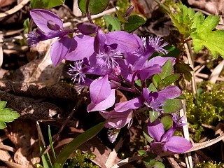 平成22年3月14日 比丘尼城址から金山、雨生山の道端ではシュンランが至る処で咲いています。 比丘尼城址を巡るの遊歩道や金山、雨生山のの周りでは可愛いシュンランが各所で見られました。 ヤマウグイスカグラやミツバツツジ、ハルリンドウなども見ごろを迎え、アオキやミツバアケビなども咲き始めました。 山行記はこちらへ。 |