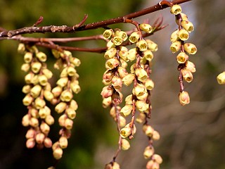 平成22年3月13日 椛、伊川津のシデコブシが咲くのもあとわずかです。 椛、伊川津ともシデコブシは咲きかけの花が幾つかあるだけですが、もうすぐにでも咲きそうな蕾が多く、後1〜2週間で見ごろを迎えるのではないかと思います。 その外にも、ショウジョウバカマやセントウソウ、ヒサカキなどが見頃を迎えていました。 |