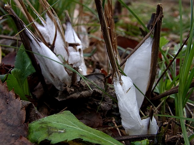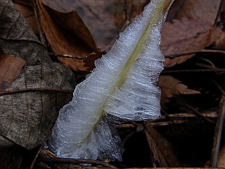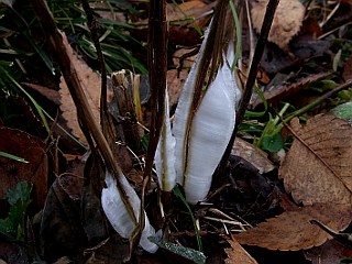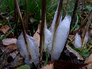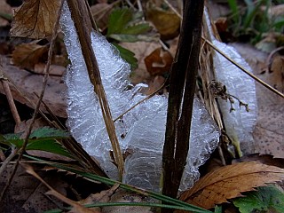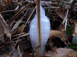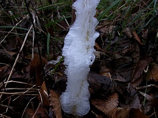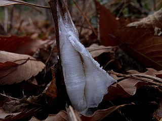 | 平成22年12月31日 綺麗なシモバシラの霜柱を見ることができた大原調整池 前日シモバシラの霜柱を見ることができた大原調整池ですが、この日更に冷え込んだので、今度は妻を連れて大原調整池へ見に行きました。この日は、昨日と違い、この日にできたばかりの綺麗なシモバシラの霜柱を見ることができました。 |